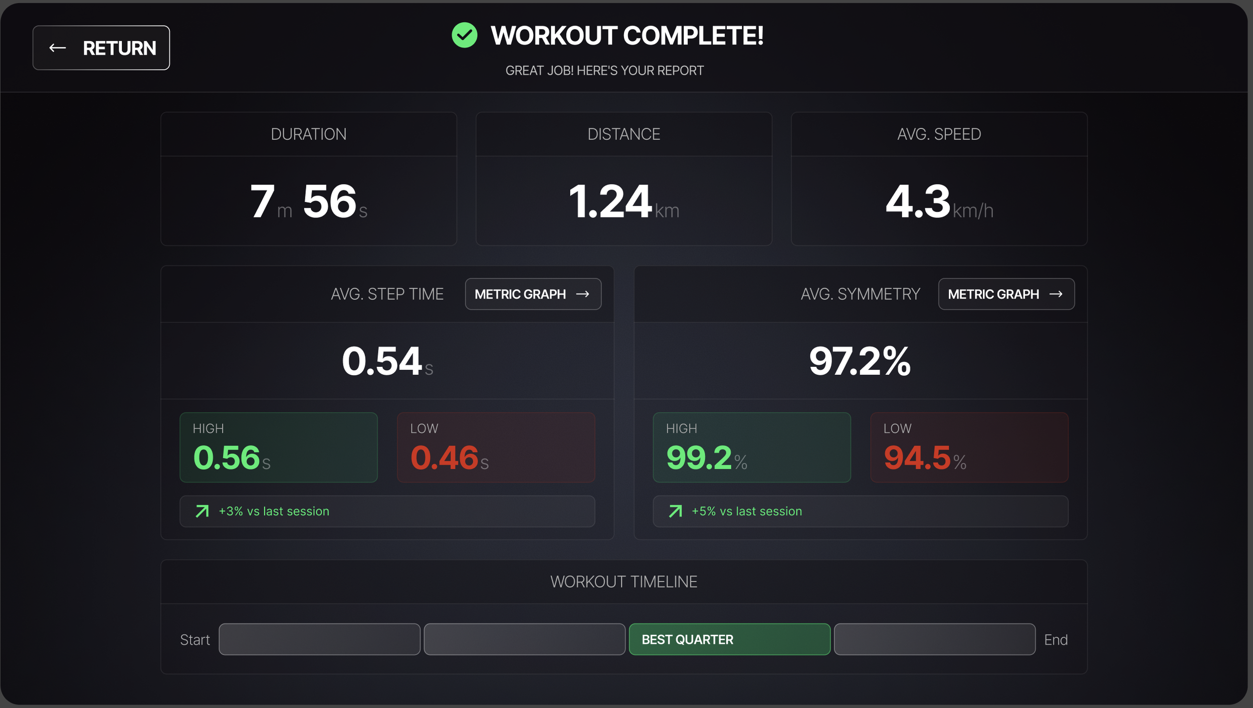 Others measure what the treadmill does Gait Index™ measures what the body does Our patented Gait Index™ software activates self-pacing treadmill technology which captures real-time gait metrics. From commoditized treadmill to intelligent movement platform. Contact Us Today!